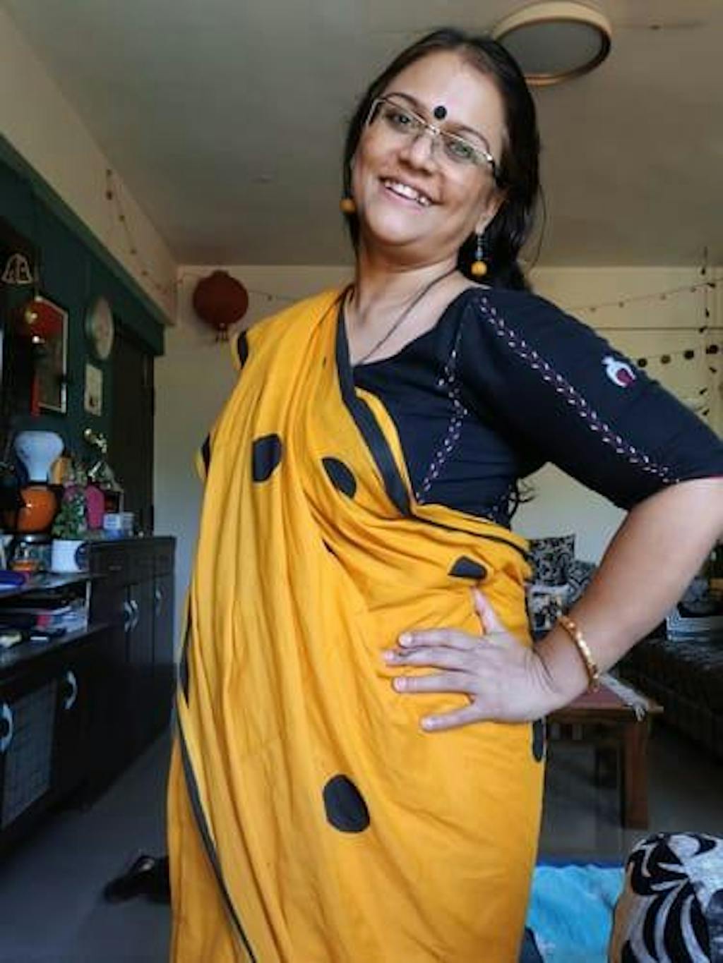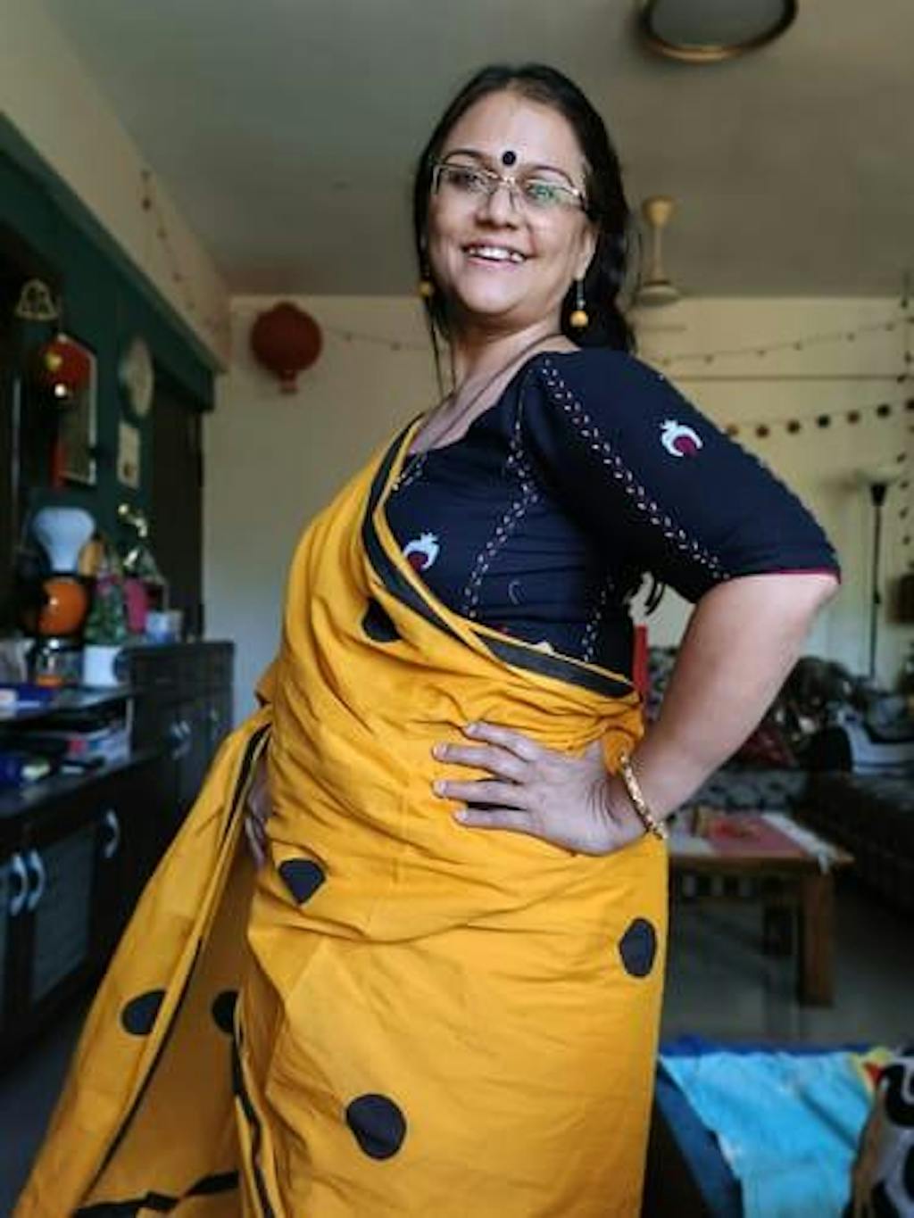 Blouse : Su, The model is wearing size S blouse and the saree is She Courageous