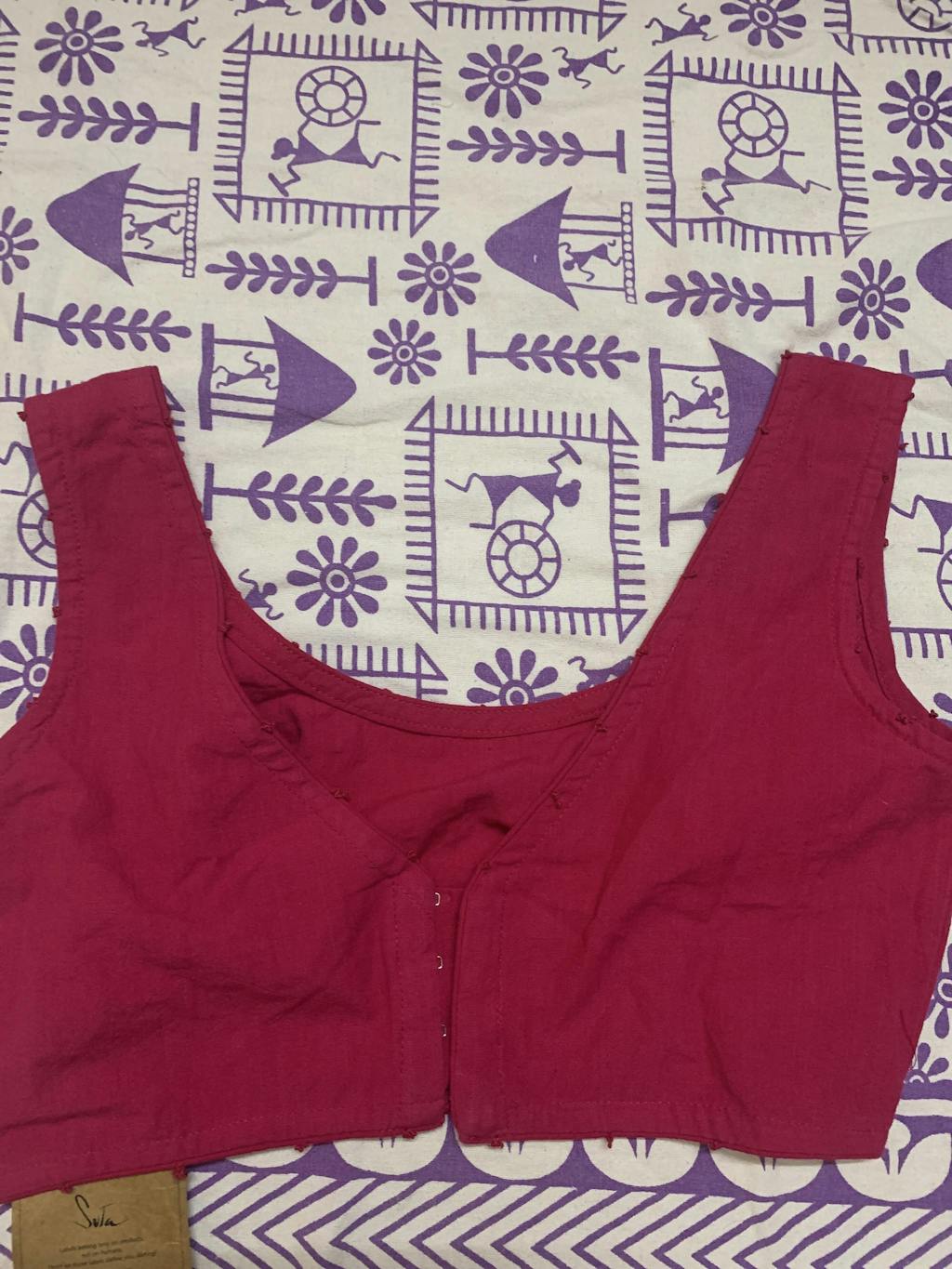 Take on a busy day with a variety of commitments in our smart and stylish deep pink non-padded blouse. The U-neck with tiny French knots complements this cotton sleeveless fit.