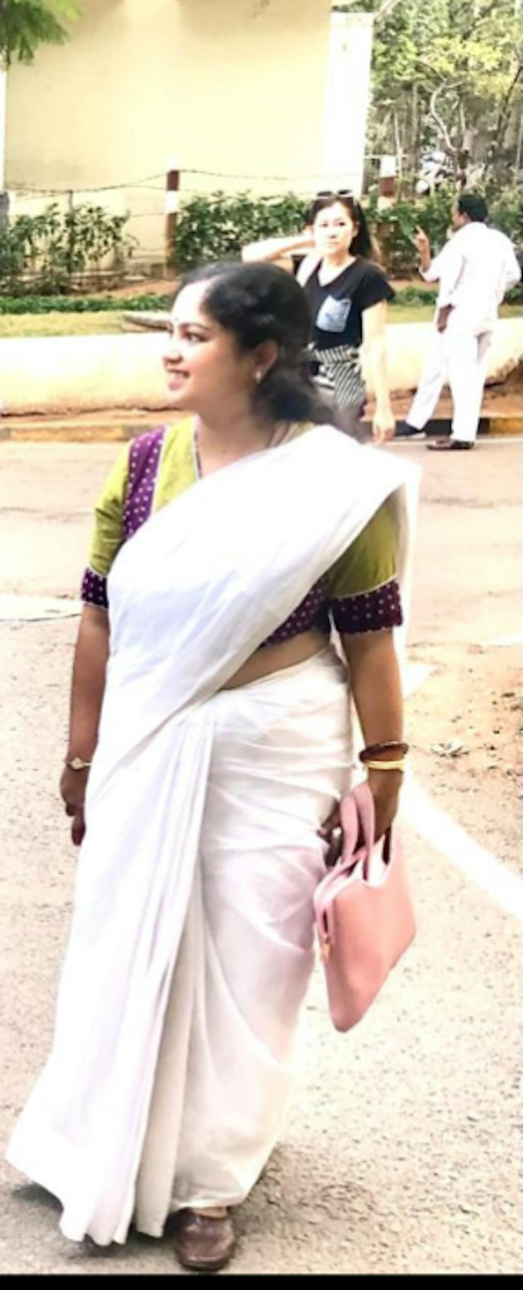 Blouse : Su, The model is wearing size XS blouse and the saree is My Bed of Snow Polka