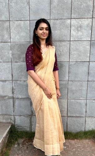 This ivory and deep gold saree in linen and zari is a dream come true!