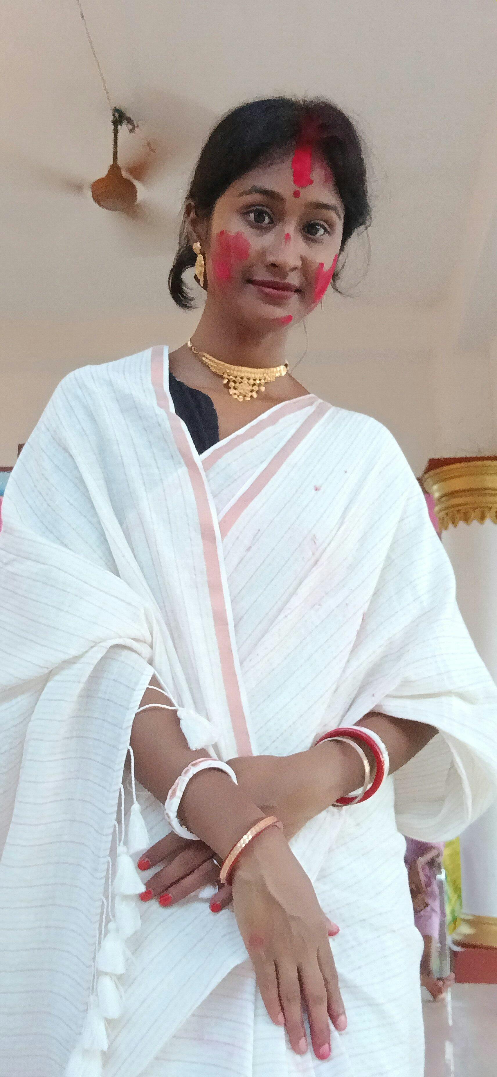 Drape this beautiful white and gold saree made of cotton and zari when you embark on a journey that encompasses countless lifetimes.